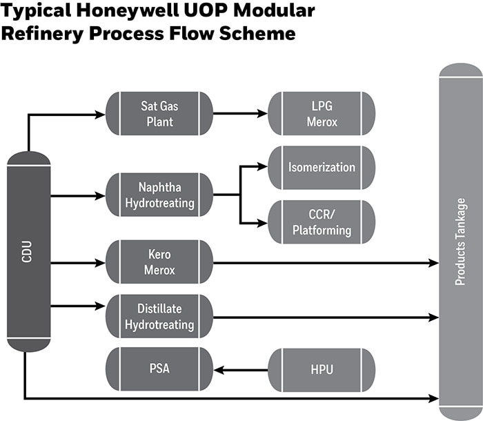 When you need a quick solution for gasoline and diesel production, turn to UOP’s Modular Refinery. Our process experience, combined with a pre-engineered approach, allows you to package select units into a refinery capable of processing 30,000 BPSD of crude. With fixed pricing and schedules, you can reduce risk and get to market faster, even in challenging scenarios.