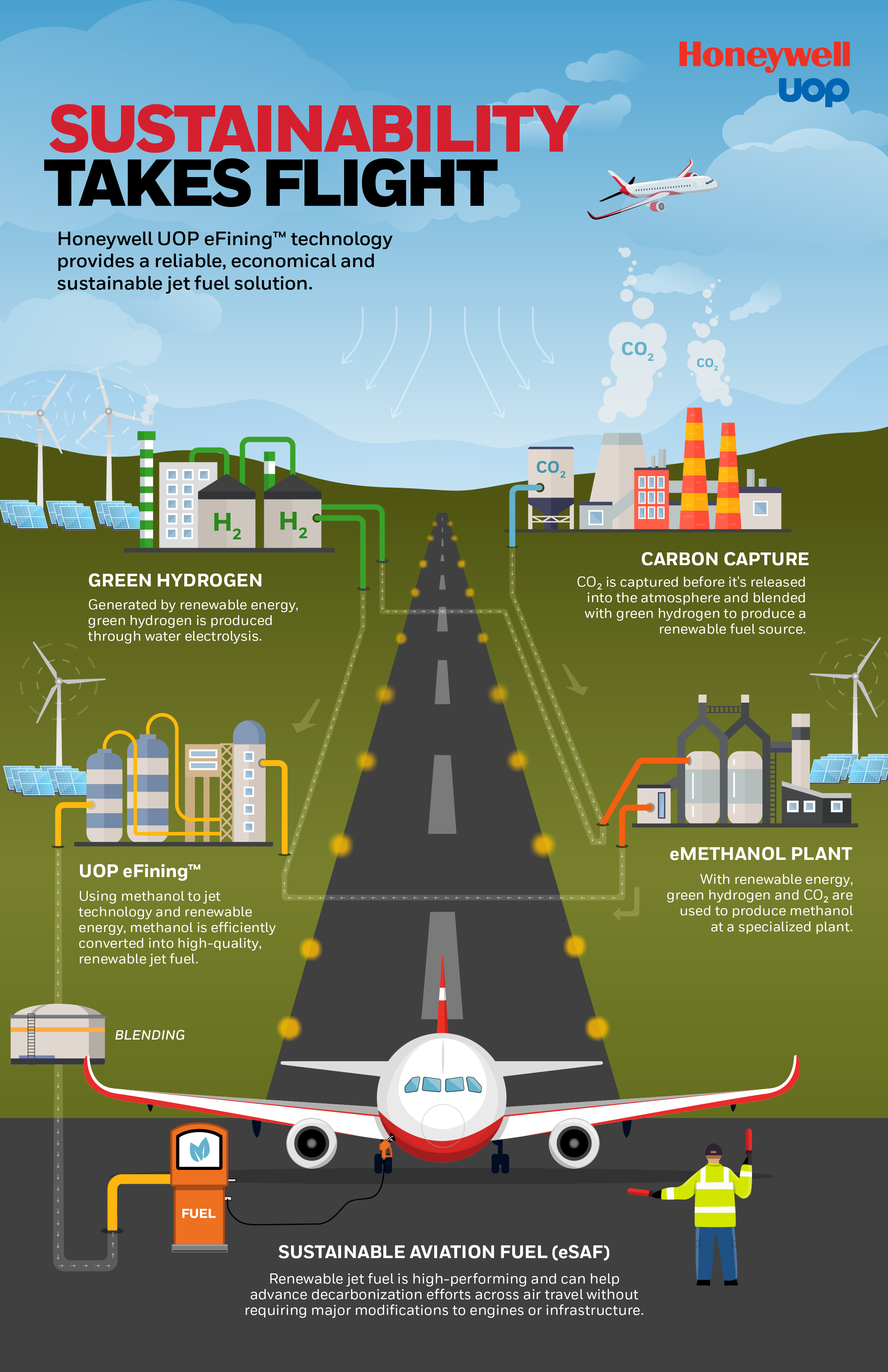 Honeywell today announced its innovative, new, UOP eFining™ technology, a ready-now solution for producing low-carbon sustainable aviation fuel (SAF). HIF Global, the world’s leading eFuels company, intends to deploy the new technology to produce eSAF at its second U.S. eFuels facility.