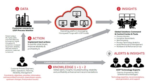 UOP has a tenured history of implementing profitable connected industrial solutions. UOP manages digital transformation solutions with over 350 service agreements customers operating refining, petrochemical and gas processing plants with most customers renewing over the last 70+ years. We have over 310 units connected at over 100 customer sites globally with plans to connect to 750+ units within a year with our digital tools deployed. We have been proactively providing support with limited data sets for decades. Extract the most value with Performance+ Services that leverage the best of our technical expertise and digital tools to be proactive and focused on adding value to your operations. We want the opportunity to partner with your technical personnel, and work side by side with you as an extension to your team, with a primary focus on creating and supporting value realization through actions.