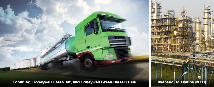 In 2006, UOP developed Honeywell Green Diesel™ technology, a fuel chemically identical to petroleum diesel, but made from inedible plants and waste oils. This was followed by contracts for the Methanol-to-Olefins (MTO) process to make plastics from coal and natural gas, the Uniflex™ process to convert heavy oil residuum into valuable fuels, and Honeywell Green Jet Fuel™ — an aircraft fuel made from renewable sources.