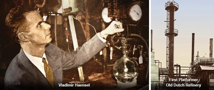 These few years were critical because, in 1947 a protégé of Ipatieff named Vladimir Haensel perfected a revolutionary new method of catalysis that used platinum as a reforming agent. The use of a metal more precious than gold to break down crude oil was thought to be economically impossible. But the method, called the Platforming™ process, greatly multiplied the yields of high-octane gasoline from crude oil while producing hydrogen for purifying — or “hydrotreating” — refinery feedstocks. This invention became the world’s leading process for making gasoline and it gave UOP a new and highly profitable process to replenish its licensing income.